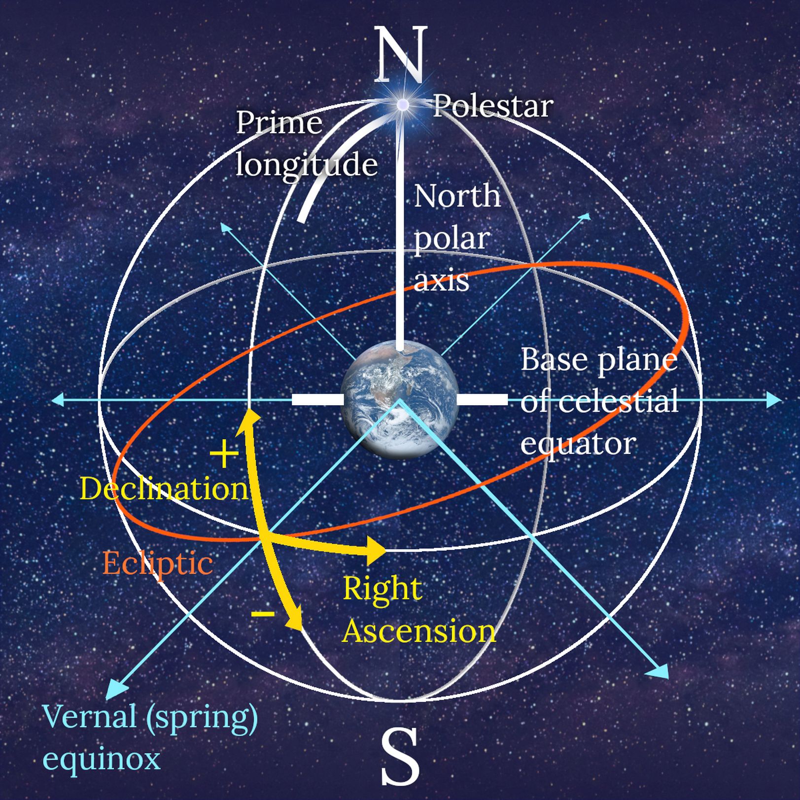 and the slanting line connects the plane of the ecliptic with the polestar above. The observer is again at the centre. This creates a permanently fixed, rational, three-dimensional framework within which all other stars can be referred.
