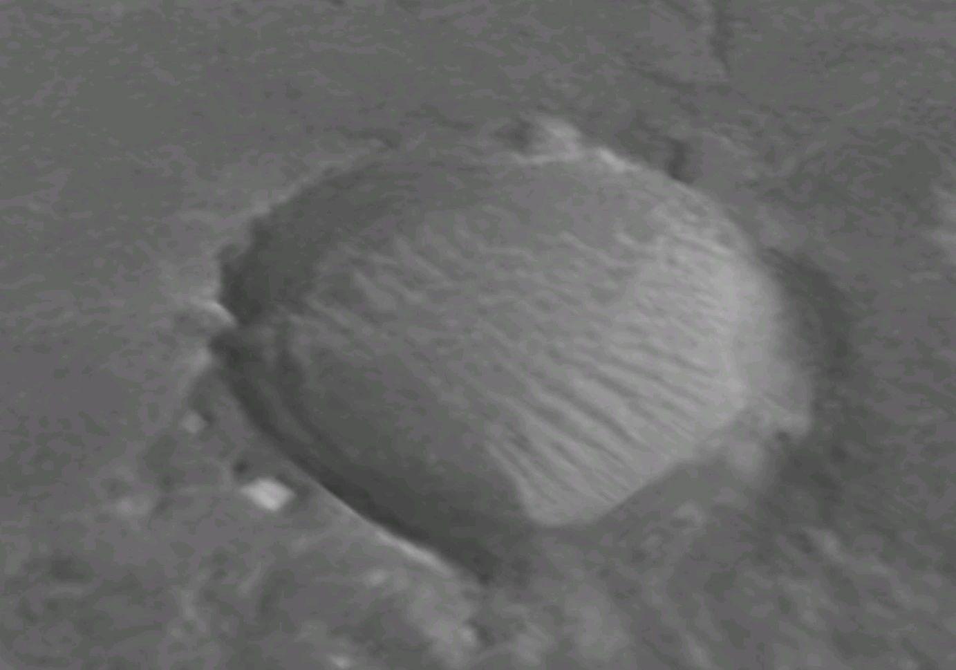 Photo 6: Resembles a cannon shell, but diameter is likely 30 centimeters. (Courtesy of JPL and NASA)